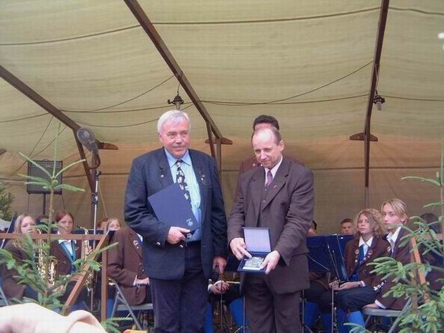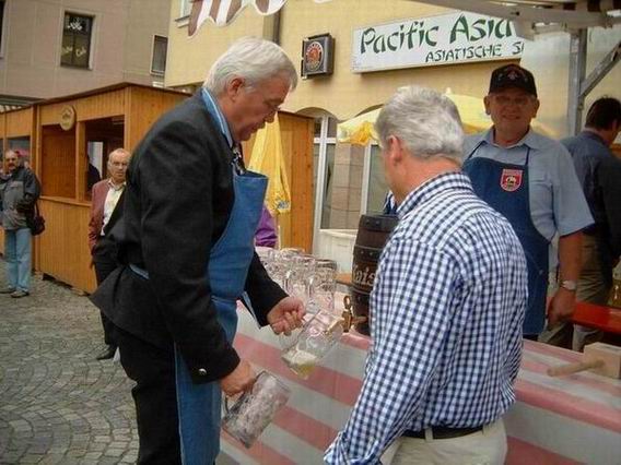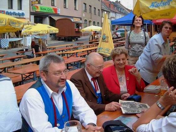 Joachim Rehberg, der Begründer der Patenschaft zwischen Patenboot und Knabenkapelle und Stadt Auerbach, im Gespräch mit Hildegard Kreuzer.