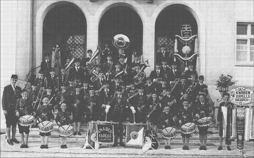 Anfang 1972 präsentierte sich die Knabenkapelle im neuen Freizeit-Look, den das Auerbacher Bekleidungswerk Ahlers für die Musiker und Vorstandschaft spendiert hatte. Diese Firma veranstaltete auch im März ein gemeinsames Konzert des Männerchores Elverdissen mit unseren Musikanten, welches Anlass zu einem späteren Gegenbesuch war. Im Laufe des Jahres wurden mehrere Veranstaltungen besucht. Im August war die Ostsee wiederum das Reiseziel. In ihrer schmucken Tracht begeisterten die Buben mit ihrem Können das Publikum.