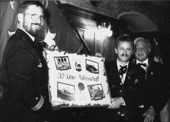Die Feierstunde anlässlich des 30-jährigen Patenschaftsjubiläums mit dem „MS-Boot Neptun-Auerbach/OPF“, der Knabenkapelle und der Stadt im Sitzungssaal am 10. Juli 1993 war mehr als nur ein Festakt. Von allen Rednern wurde besonders die tiefe und innige Freundschaft zwischen Besatzung und Auerbacher Bevölkerung hervorgehoben. So bekräftigte Bürgermeister Hanni Haberberger: „Diese vor 30 Jahren geknüpften Bande sind auch heute noch ganz fest!“ Josef Merkl betonte, dass sich die Knabenkapelle als Bindeglied zwischen der Bootsbesatzung und der Stadt sehe. Er sagte: „Wir sind diejenigen, die auf gesellschaftlicher Ebene die Patenschaft unterhalten und für die Matrosen da sein können.“ Auch Udo Bünte dankte der Stadt, der Knabenkapelle und den Gasteltern für die Freundschaft und Herzenswärme, von der die Patenschaft geprägt sei.