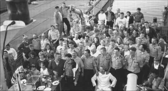 Die Auerbacher Gäste und ihre Gastgeber auf dem Patenboot „Auerbach/OPF“