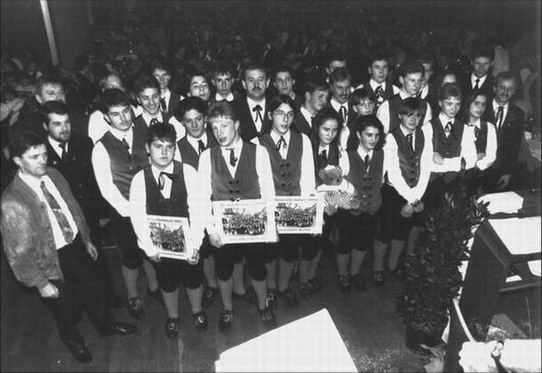 Eine ganze Reihe von Mitgliedern der Knabenkapelle Auerbach wurde im Rahmen des Weihnachtskonzertes 1994 geehrt.
