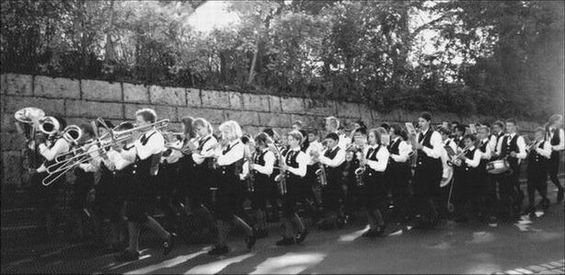 Die Knabenkapelle marschiert zur „Kirwa-Feier“.