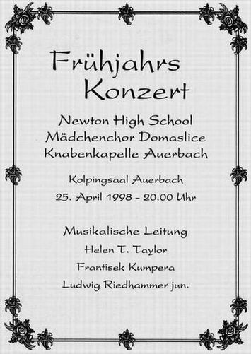 Am Sonntag, dem 24. Mai 1998, präsentierte sich die Knabenkapelle in Bayreuth einem großen Publikum und trug mit ihrem Auftritt wesentlich zur Gestaltung des Bahnhofsfestes in der Wagnerstadt bei. Bereits am nächsten Freitag fuhren die Musiker nach Auschwitz, um dem Kinderdorf Maja einen Besuch abzustatten. Leiter und Initiator Janusz Marszalek konnte dieses Mal auch zusätzlich eine Abordnung der Stadt Auerbach mit Bürgermeister Helmut Ott an der Spitze begrüßen.