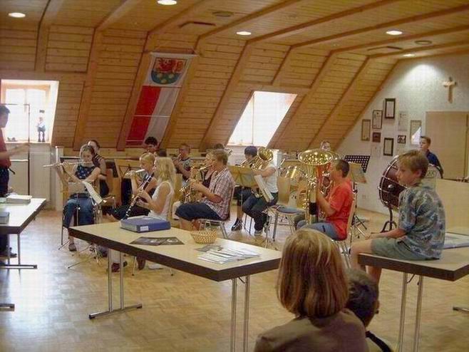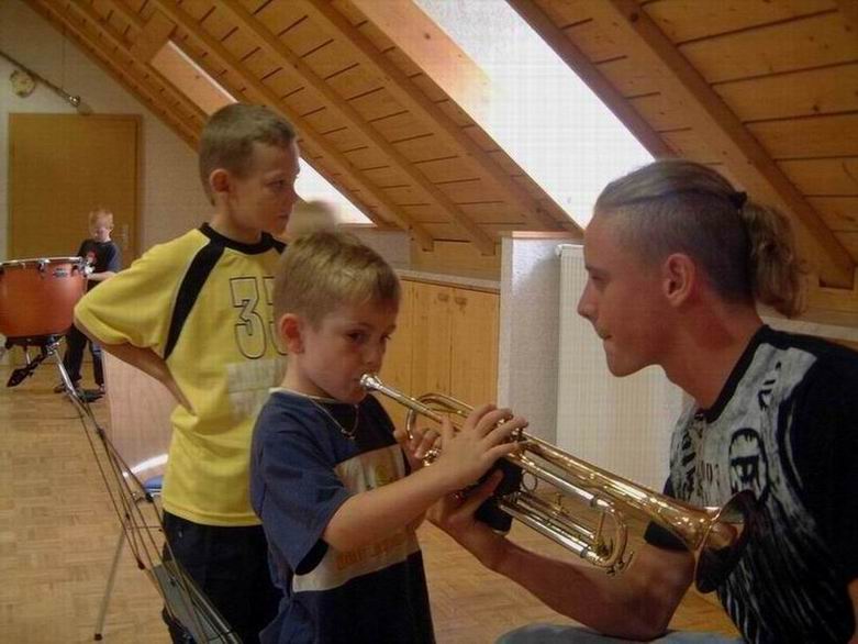 Eine kleine Schar unserer Knabenkapelle gibt den Nachwuchstalenten eine kurze Kostprobe ihres Könnens.