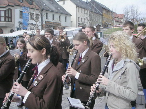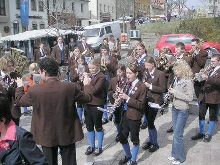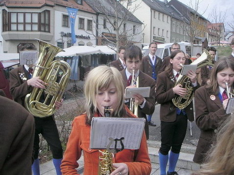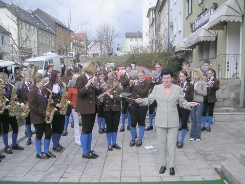 Etwas zaghaft dirigiert Frau Lindner den Glückauf-Marsch