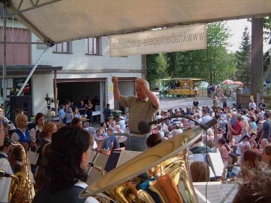 Bürgermeister Ott dirigiert den neuen Marsch "Anker gelichtet"