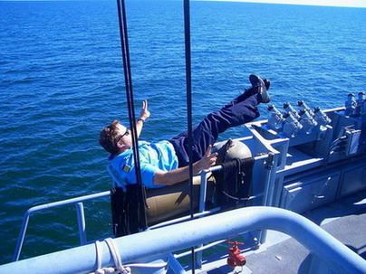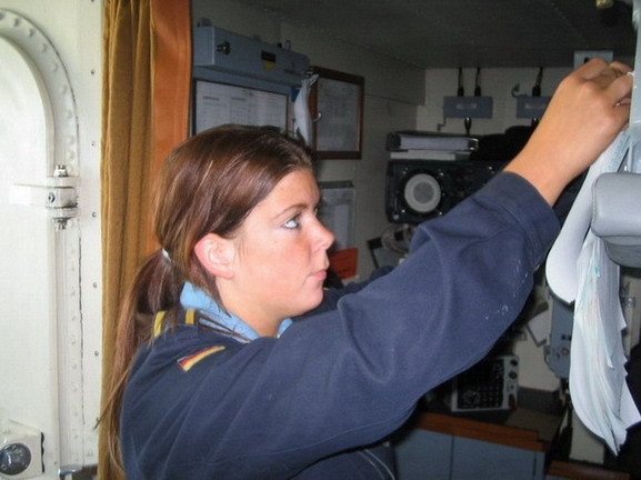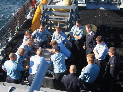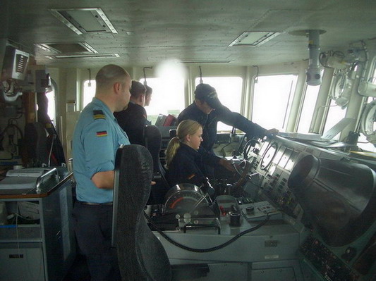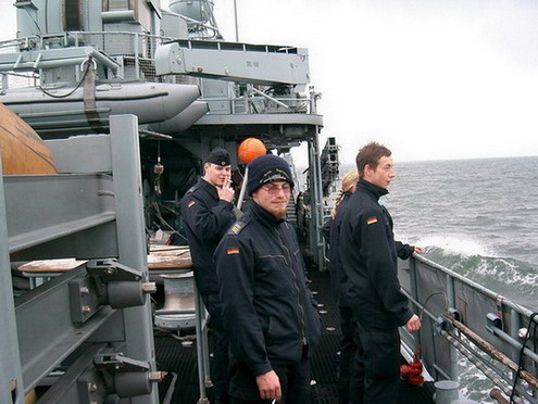 Beim Preisausschreiben des Patenbootes hatten Sabrina Dornisch und Verena Lehner einen einwöchigen Aufenthalt auf der Auerbach als aktive Seeleute gewonnen. Sie durften an Bord des Patenbootes mit den Seemännern bei einem Manöver in der Ostsee Dienst "schieben".