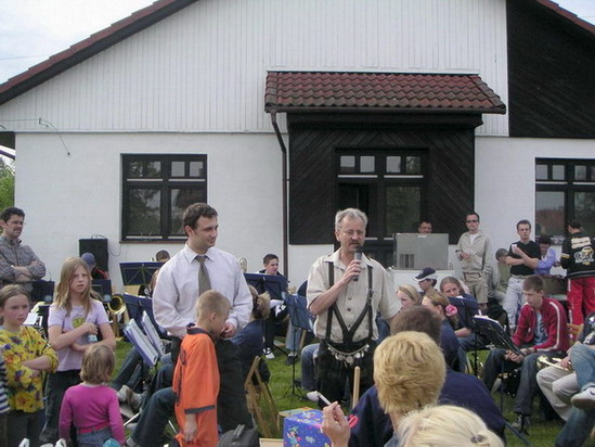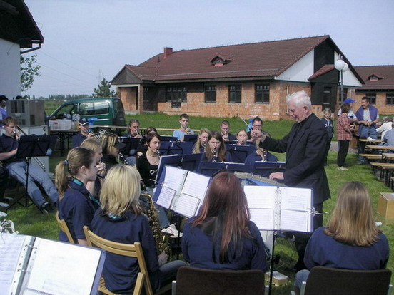 Pfarrer Gorny dirigiert den Glückauf-Marsch