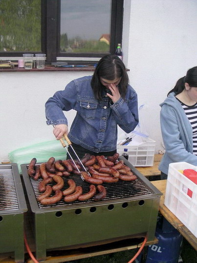Ein Mädchen des Kinderdorfes bereitet leckere Bratwürste